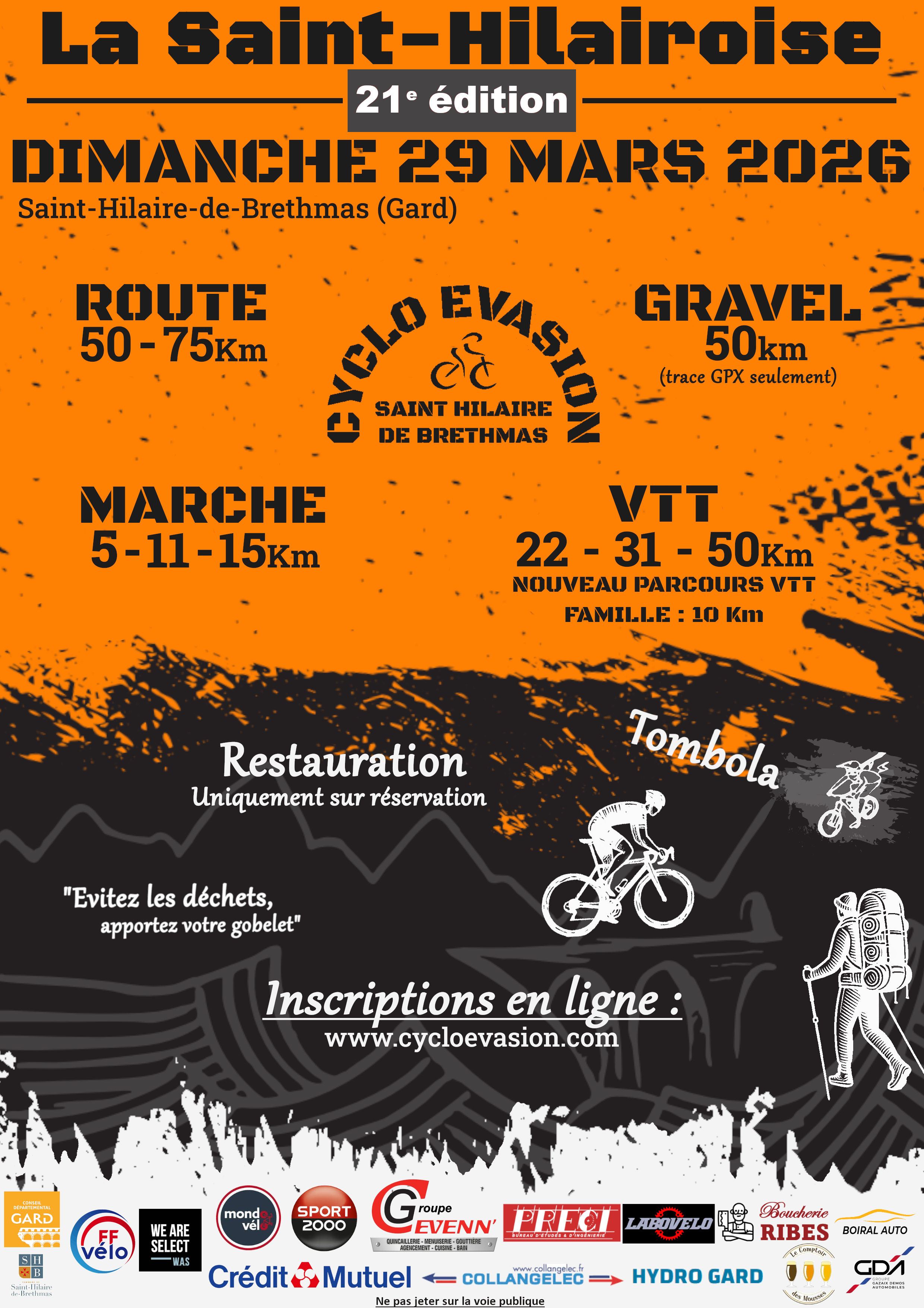 L’association Cyclo Évasion remercie chaleureusement tous ses partenaires, sponsors et bénévoles pour leur engagement dans l’organisation de la 20e édition de la Saint Hilairoise qui s’est tenue le 30 mars 2025 ! Grâce à vous, cet événement a été un véritable succès !